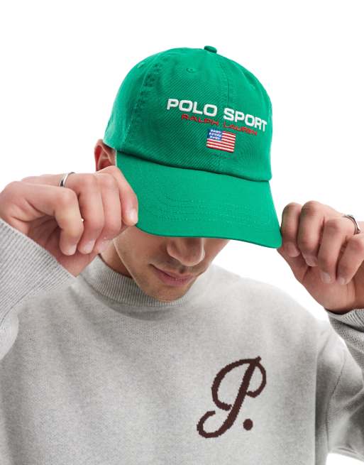 Polo Ralph Lauren – Sport Capsule – Twill-Baseballkappe in Mittelgrün mit Flaggen-Logo