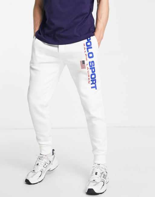 Polo Ralph Lauren – Sports Capsule – Jogginghose in Weiß mit Bündchen und Logo am Bein