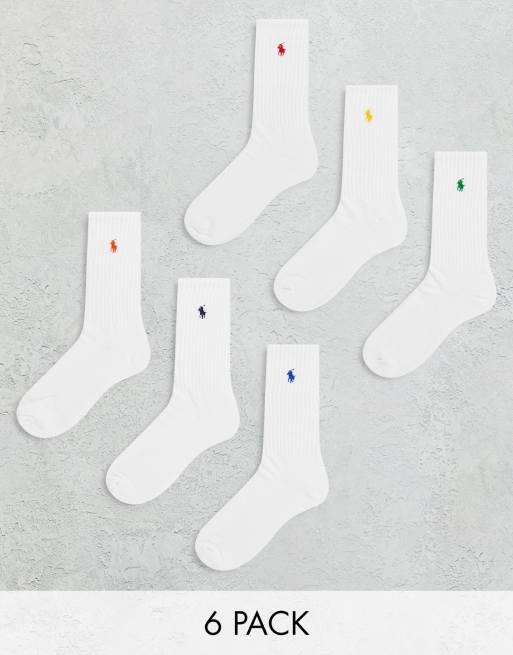 Polo Ralph Lauren – Sportsocken in Weiß im 6er-Pack mit Pony-Logo in verschiedenen Farben