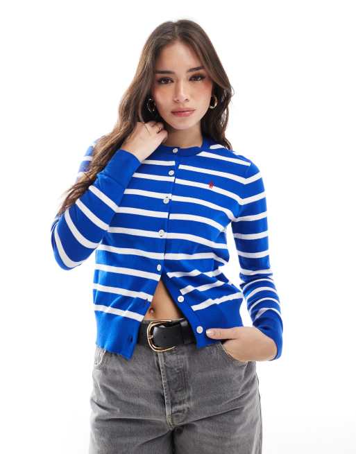 Polo Ralph Lauren – Strickjacke in Blau und Weiß gestreift