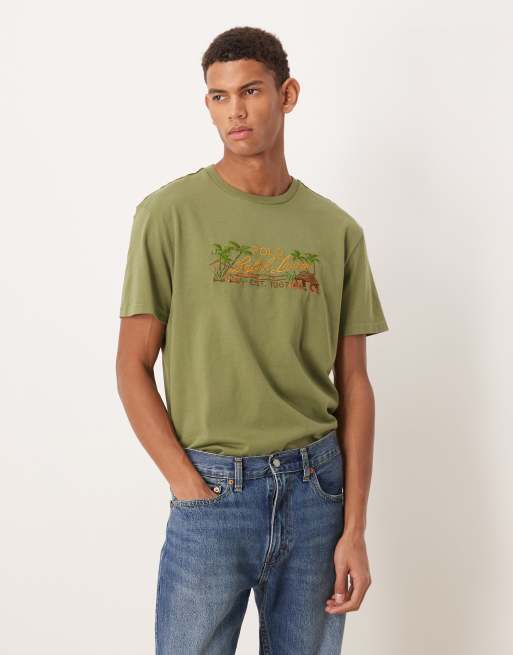 Polo Ralph Lauren – T-Shirt aus Baumwolle in Olivgrün mit aufgesticktem Landschafts-Logo und klassischer Oversize-Passform