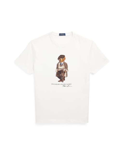 Polo Ralph Lauren – T-Shirt in Weiß mit Bear-Print mit traditioneller Kappe