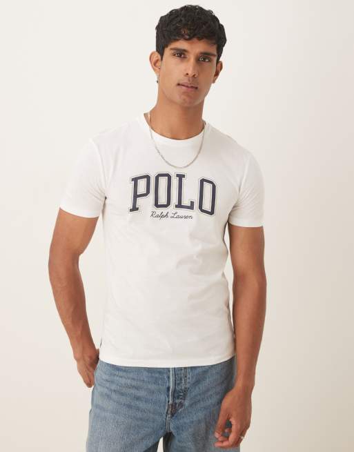 Polo Ralph Lauren – T-Shirt in Weiß mit College-Logo-Schriftzug