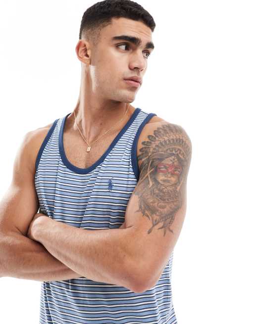 Polo Ralph Lauren – Trägertop in Hellblau mit Logo und mehrfarbigen Streifen
