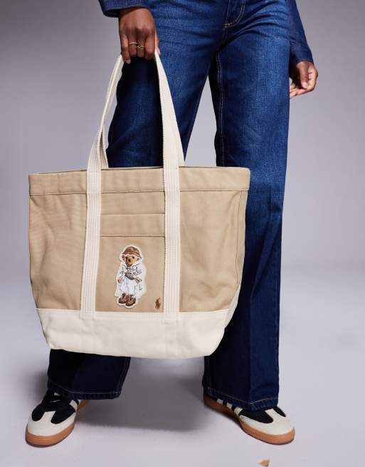 Polo Ralph Lauren – Tragetasche in Beige mit Bärenlogo