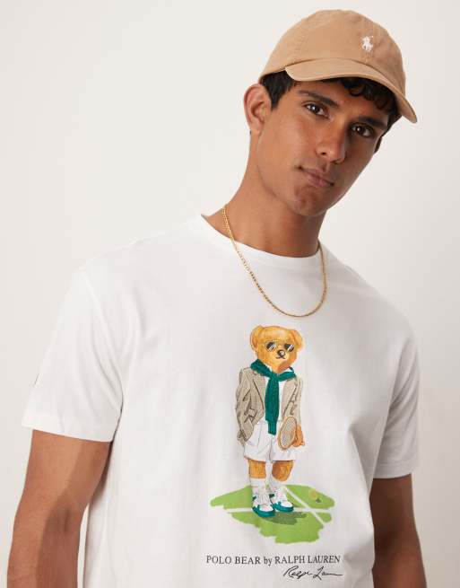 Polo Ralph Lauren – Wimbledon Capsule – T-Shirt in Weiß mit Bärmotiv