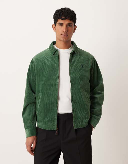 Polo Ralph Lauren – Wynton – Gefütterte Harrington-Jacke aus schwerem Cord in Dunkelgrün mit Markenlogo