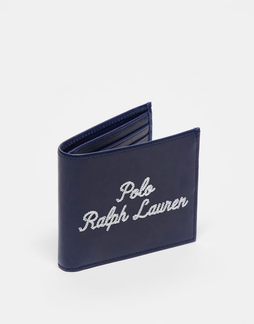 Polo Ralph Lauren – Zweifach gefaltete Brieftasche aus Leder in Marineblau mit Logo