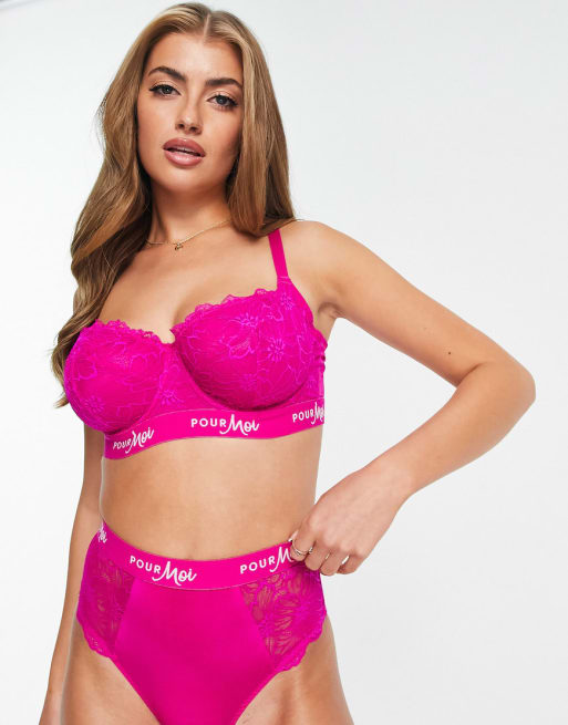 Pour Moi – Größere Brust – Elastisches Lingerie-Set in Pink mit Logo