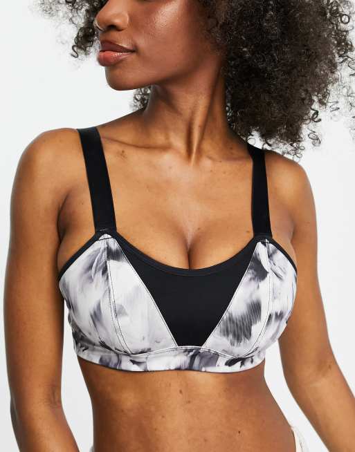 Pour Moi – Größere Brust – Energy – Leicht wattierter Sport-BH mit verstellbaren Trägern und schwarz-weißem Blumenmuster