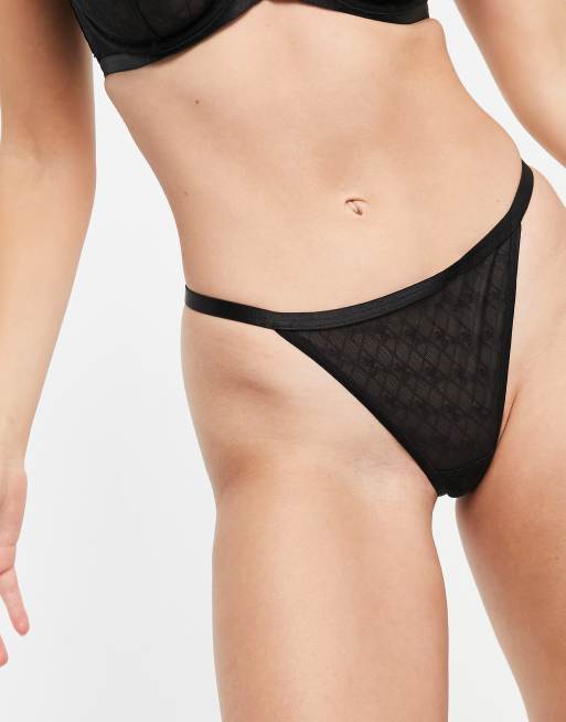 Pour Moi – Stringtanga aus Netzstoff in Schwarz mit Logo