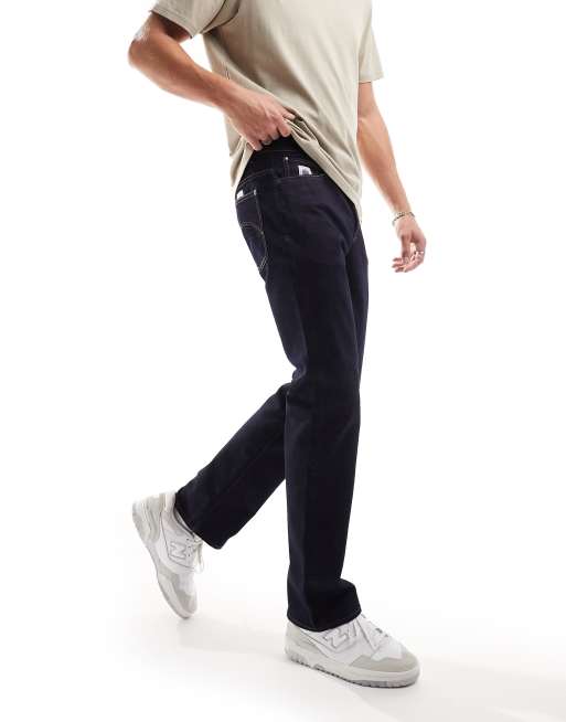 - Jeansstoff ohne Stretch: dunkelblaue Waschung