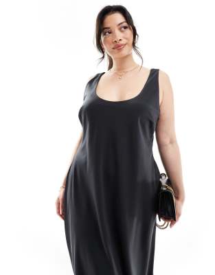 Pretty Lavish Curve – Maxi-Trägerkleid in Schwarz aus Satin