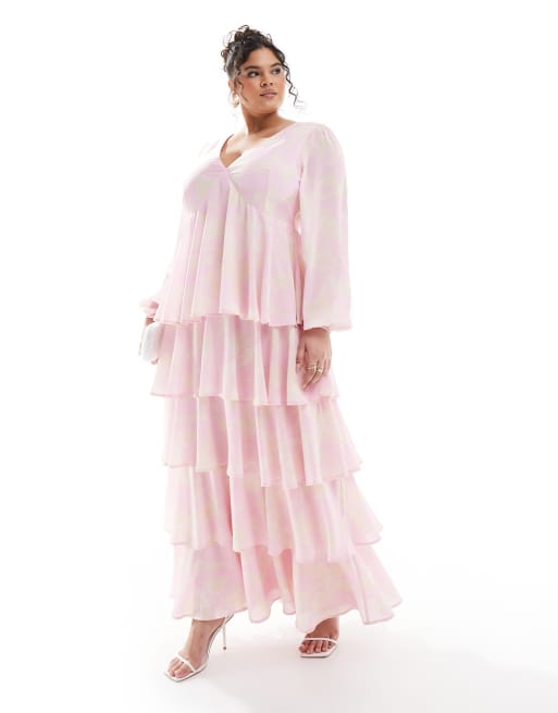 Pretty Lavish Curve – Maxikleid mit Rüschen und Blumenmuster in Rosa