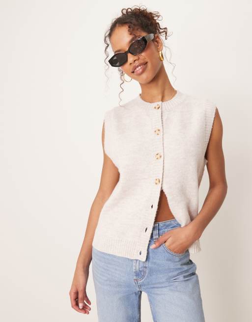 Pretty Lavish – Flauschige Strickweste in Kreideweiß
