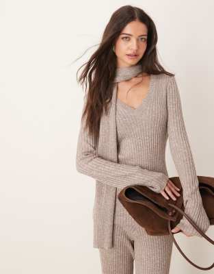 Pretty Lavish – Geripptes Oberteil in Grau mit V-Ausschnitt und Schal, Kombiteil