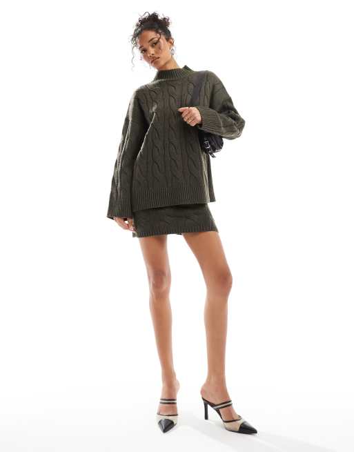 Pretty Lavish – Gestricktes Set in Olivgrün mit Zopfmuster