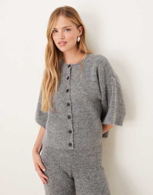 Pretty Lavish – Ovalie – Kurzärmliges Oberteil aus Strick in Anthrazit, Kombiteil