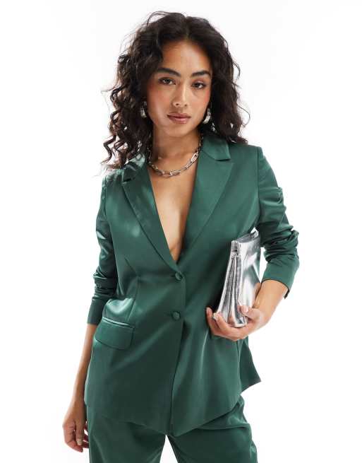 Pretty Lavish – Oversized-Blazer aus Satin in Smaragdgrün, Kombiteil