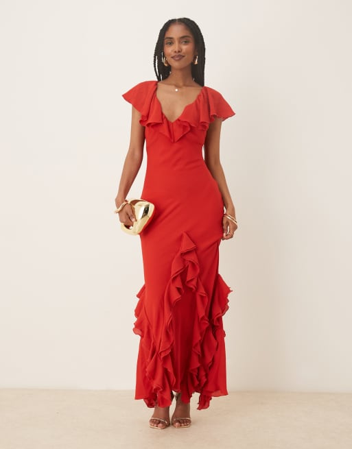 Pretty Lavish – Uma – Gerafftes Maxikleid in Rot mit Flügelärmeln
