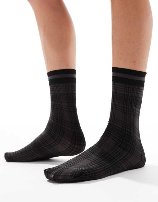 Pretty Polly – Transparente Socken in Schwarz mit Schottenkaro