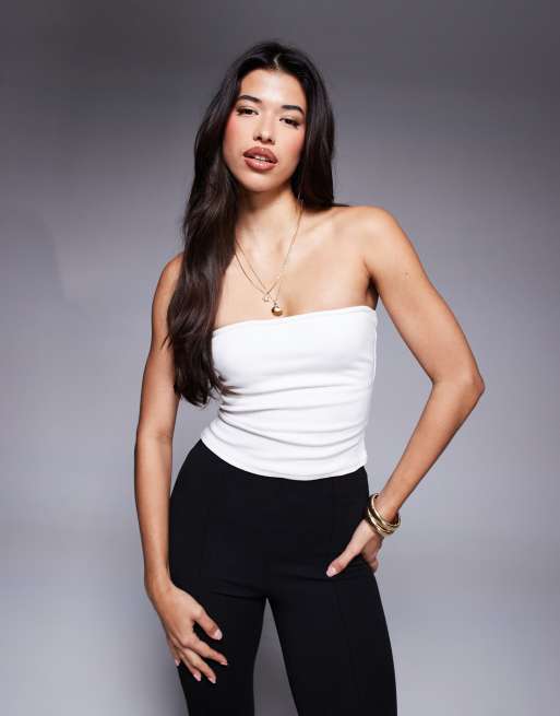 Princess Polly – Geripptes, trägerloses Oberteil in Weiß