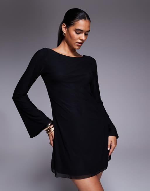 Princess Polly – Lukea – Netzstoff-Minikleid in Schwarz mit ausgestellten Ärmeln und Rückenausschnitt