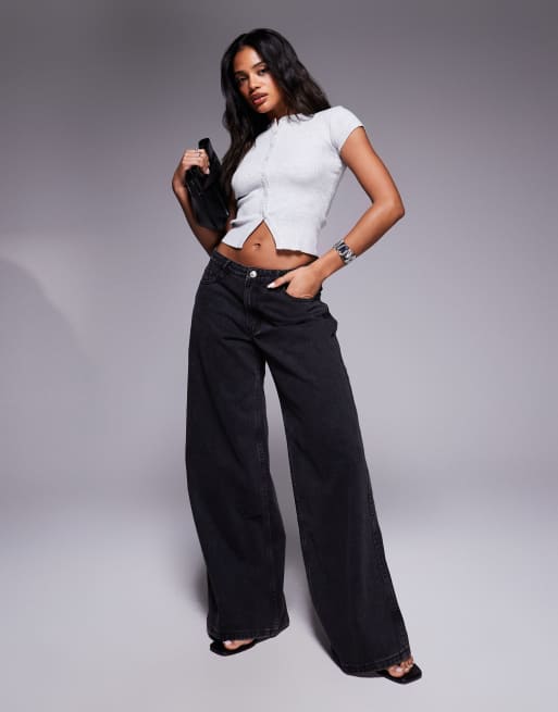 Princess Polly – Ramos – Jeans in verwaschenem Schwarz mit niedrigem Bund und weitem Bein