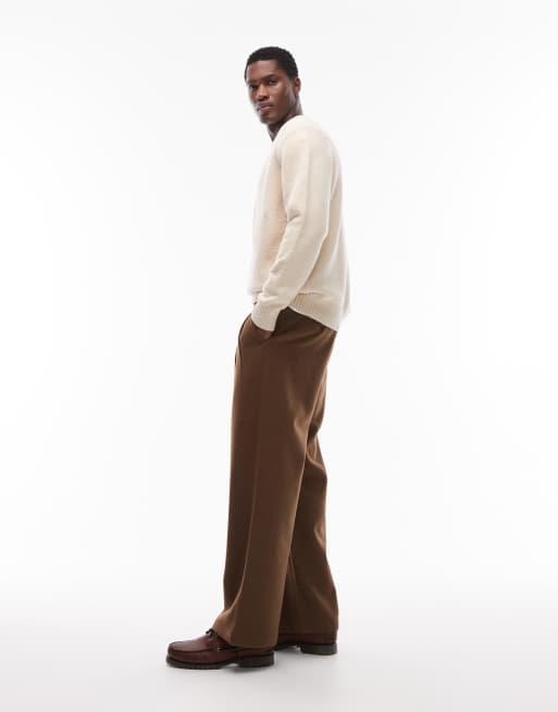 Prohibited – Club-Hose in brauner Wolloptik mit doppelten Bundfalten