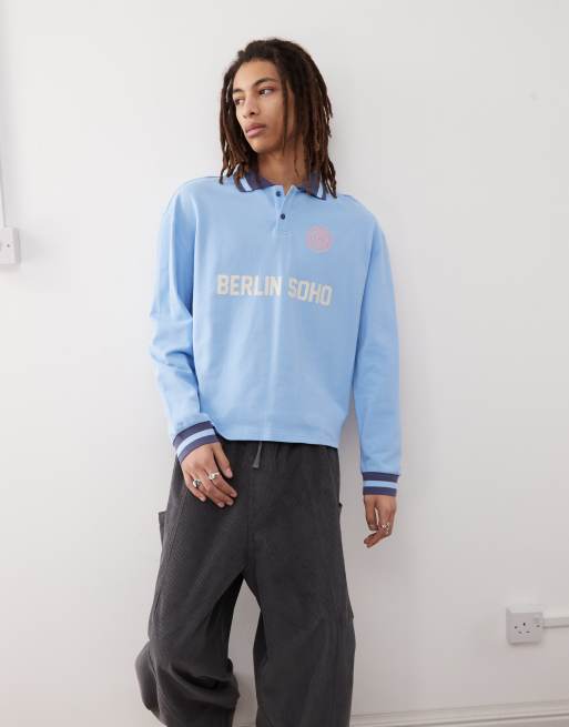 Prohibited – Langärmliges Polohemd in Blau