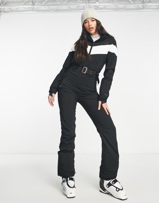 Protest – Retro-Skianzug in Schwarz mit weißem Streifen