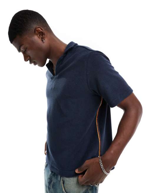 PS Paul Smith – Kurzärmliges Shirt aus Frottee in Navy mit Streifen, Kombiteil
