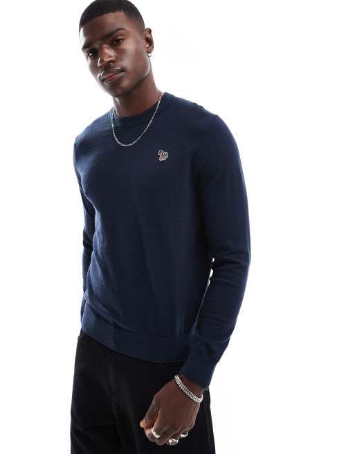 PS Paul Smith – Strickpullover in Marineblau mit Rundhalsausschnitt und Zebra-Markenlogo