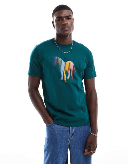 PS Paul Smith – T-Shirt in Petrol mit Zebra-Logoprint