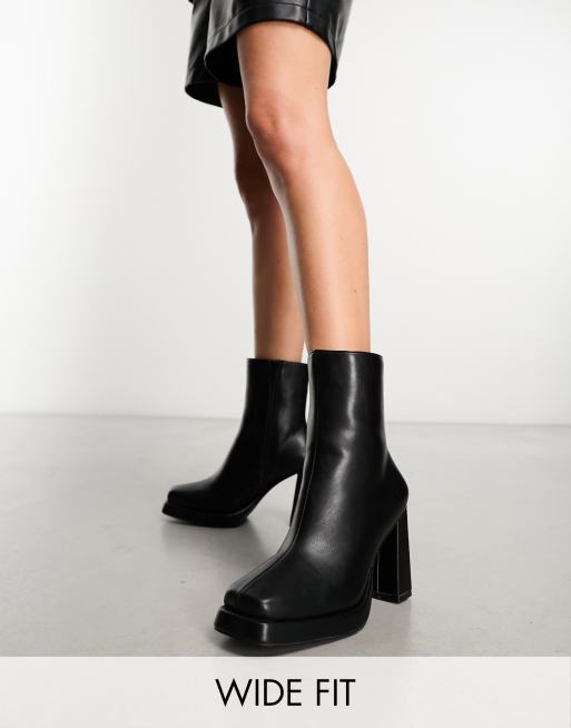 Public Desire Wide Fit – Patty – Ankle-Boots mit Absatz und Zehenpartie aus Metall in Schwarz