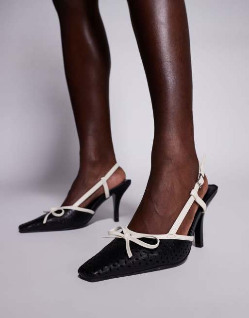 Public Desire – Alchemy – Absatzschuhe in Creme und Schwarz mit Fersenriemen, lasergeschnittenem Design und Schleife