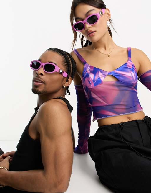 Public Desire – Rechteckige Sonnenbrille aus Kunststoff in Lila mit Yin-Yang-Detail am Bügel