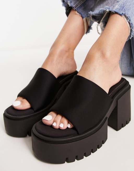 Public Desire – Sabeena – Mules in Schwarz mit dicker Sohle und Absatz
