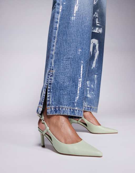 Public Desire – Salsa – Slingback-Schuhe in Grün mit Kitten Heels