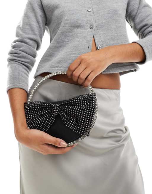 Public Desire – The Alessia – Clutch in Schwarz mit Schleife und Schmucksteinverzierung