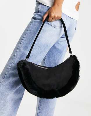 Public Desire – The Kinley – Halbmondförmige Tasche in Schwarz mit Kunstpelzbesatz