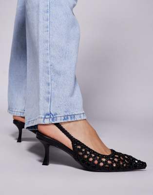 Public Desire – Thelma – Geflochtene Slingback-Schuhe in Schwarz mit Absatz
