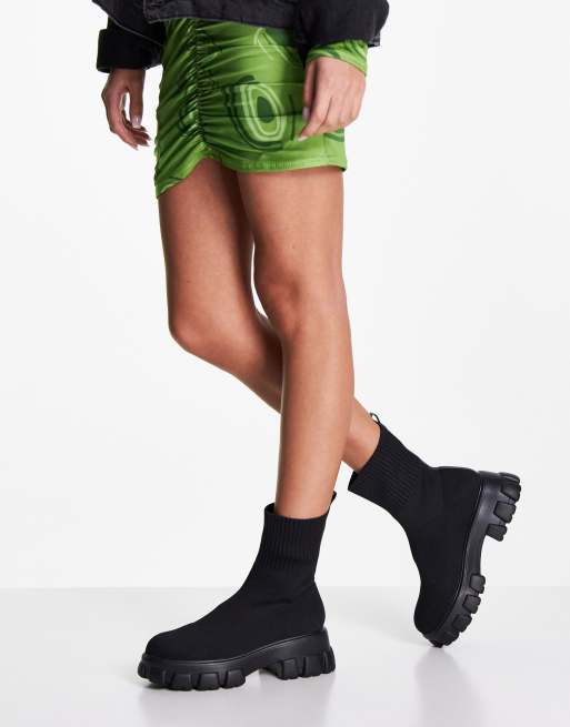Public Desire – Trust – Sock-Boots in Schwarz mit dicker Sohle