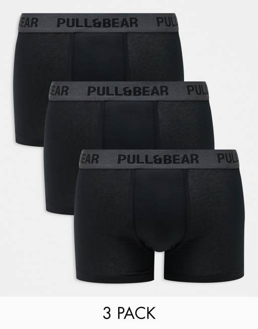 Pull&Bear – 3er-Pack Boxershorts in Schwarz mit Bund in kontrastierendem Grau