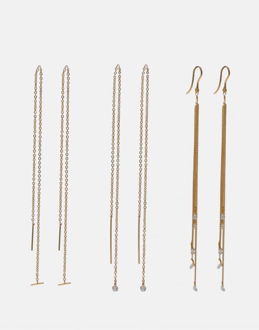 Pull&Bear – 3er-Pack Hängeohrringe in Goldoptik