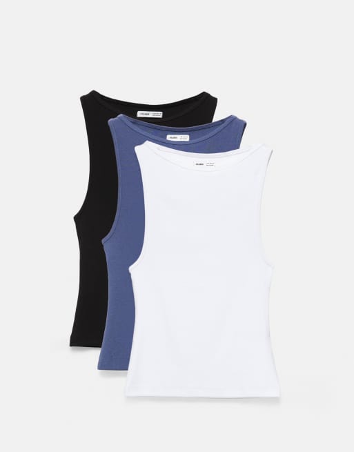 Pull&Bear – 3er-Pack Tanktops in Marineblau
