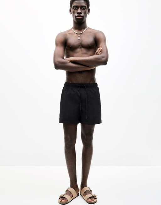 Pull&Bear – Badehose in Schwarz aus strukturiertem Material