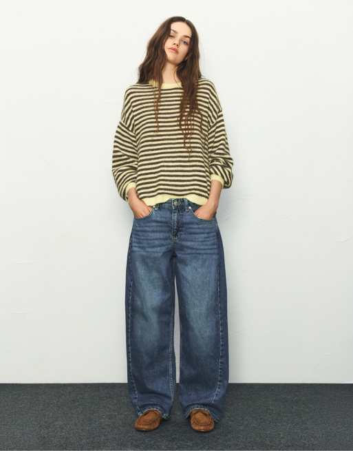 Pull&Bear – Barrel-Leg-Jeans in Mittelblau mit niedrigem Bund