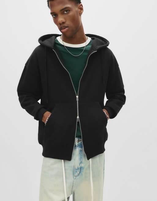 Pull&Bear – Basic – Kapuzenjacke mit Reißverschluss in Schwarz