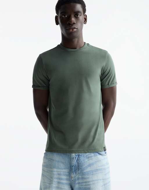 Pull&Bear – Basic-Muskelshirt in Grün